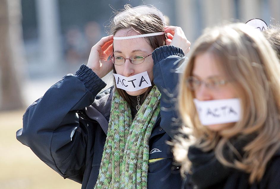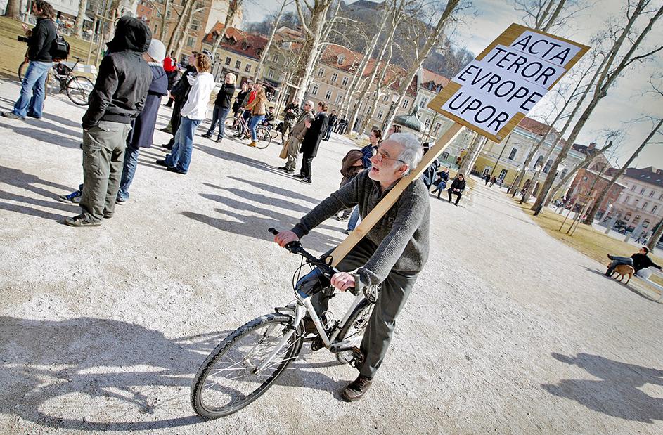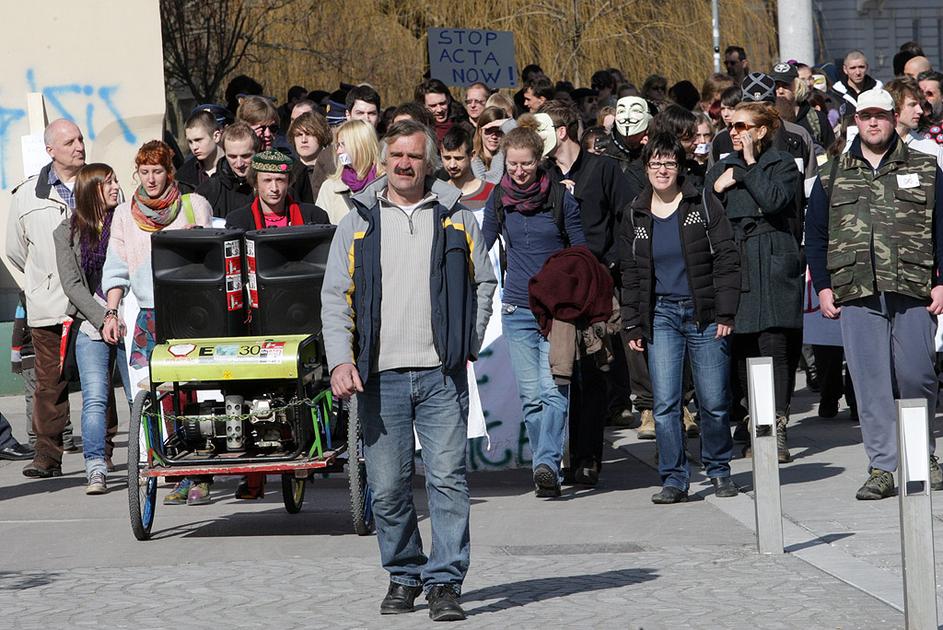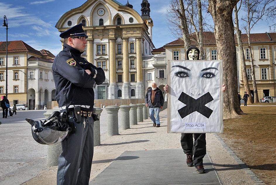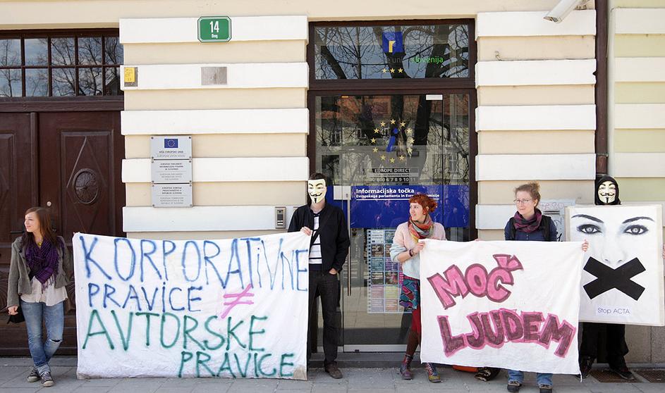 Protest proti Acti v Ljubljani.