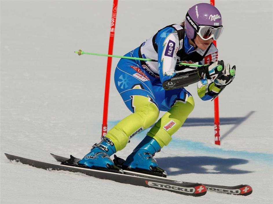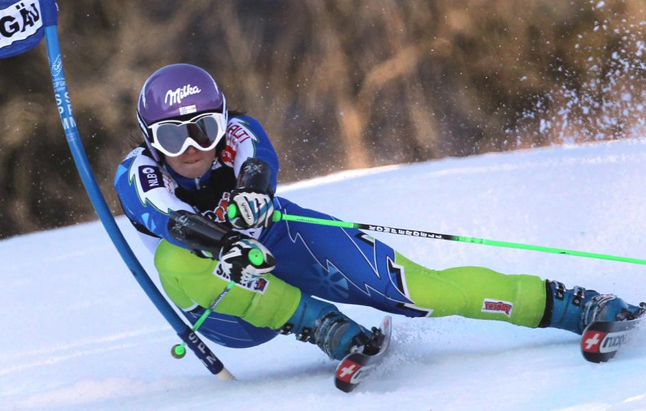 Mazejeva med prvo vožnjo veleslaloma.