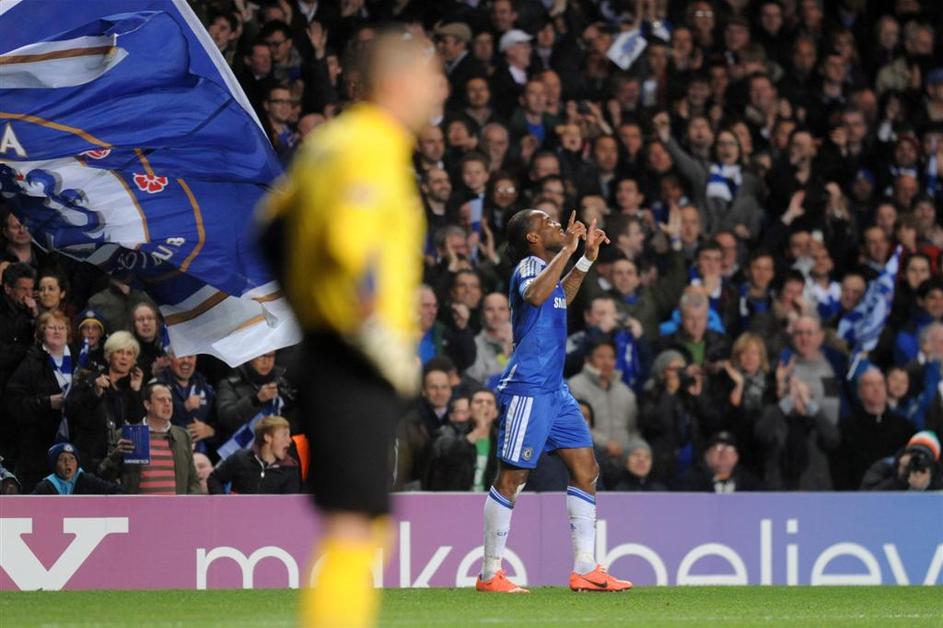 Drogba zastava navijači Chelsea Barcelona Liga prvakov polfinale prva tekma Stam