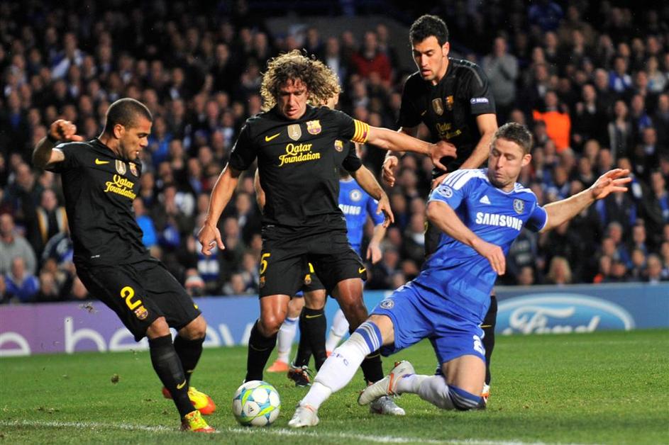 Alves Puyol Busquets Cahill Chelsea Barcelona Liga prvakov polfinale prva tekma