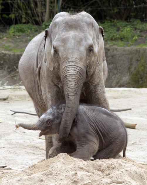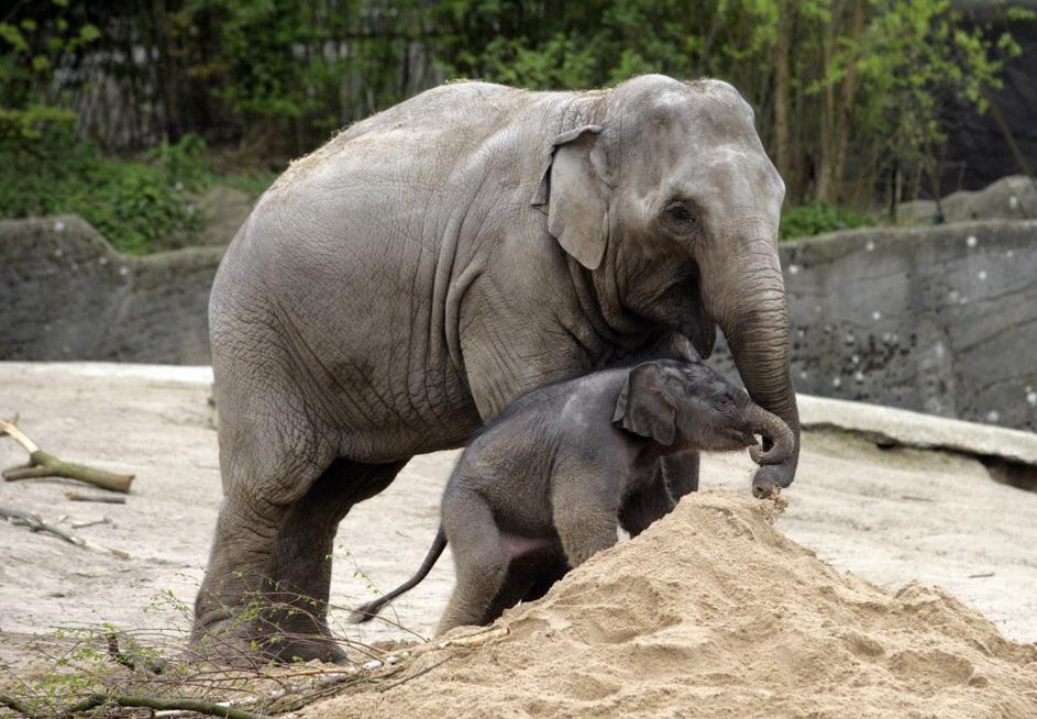 Slonček Assam se je prvič lahko igral na prostem. Prebiva v živalskem vrtu Hagenbeck v Hamburgu.