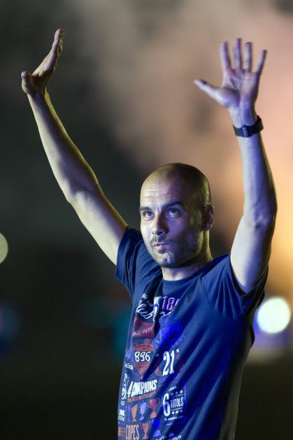 Pep Guardiola pozdravlja navijače na Camp Nou.