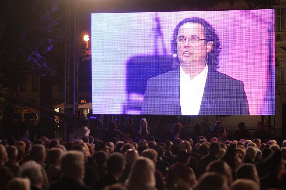 Zvezda miru je zasijala med državno proslavo na Kongresnem trgu.