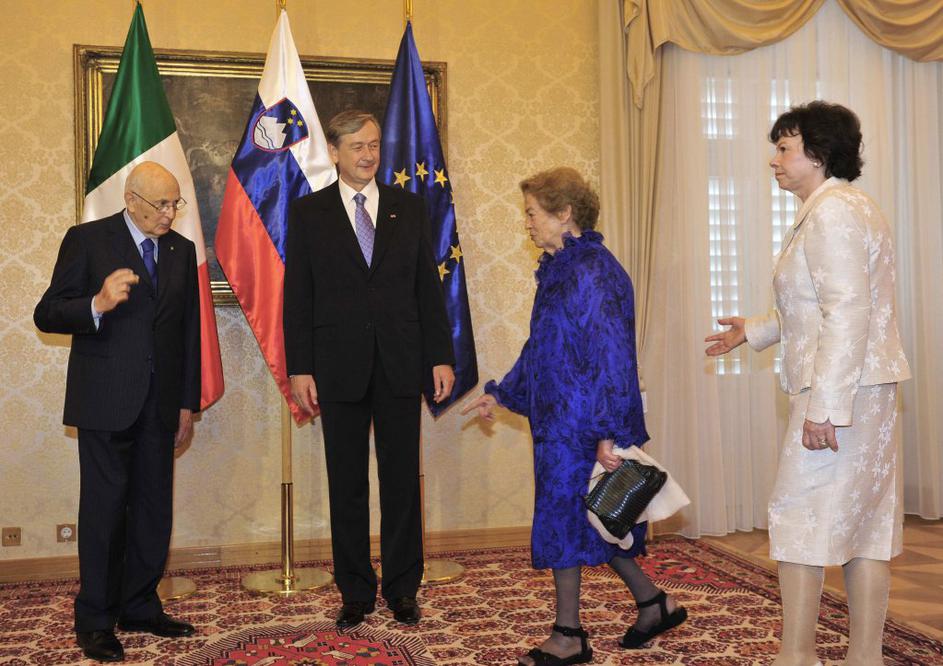 Slovenski predsednik Danilo Türk z ženo Barbaro in italijanski predsednik Giorg