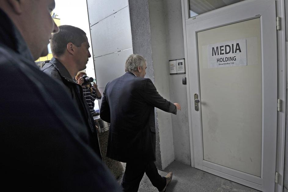 Na Info TV policisti opravljajo hišno preiskavo, tja so pripeljali tudi Voduška.