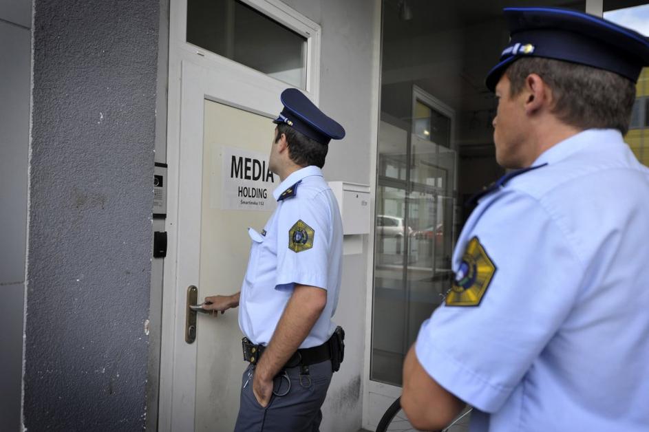 Policisti so v prostorih Info TV v Ljubljani.