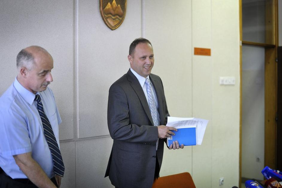 Vodušek, tiskovka Tiskovna konferenca Pu Celje. Na sliki Aleš Slapnik, pomočnik vodje kriminalistične policije Celje in tiskovni predstavnik Pu Celje Peter Pungartnik. Anže Petkovšek