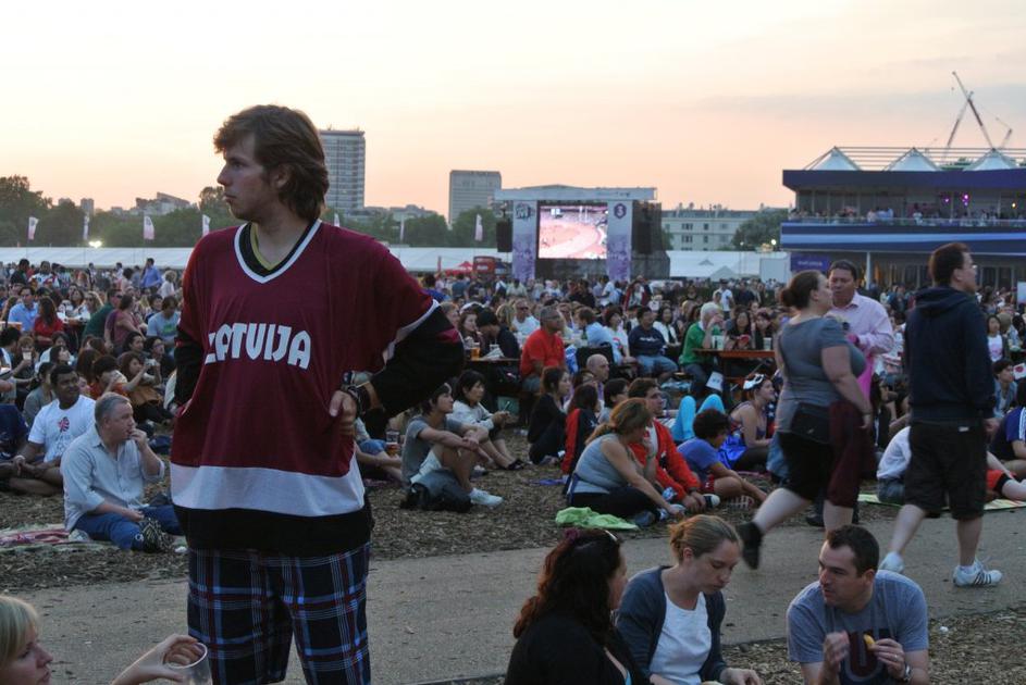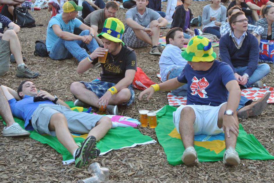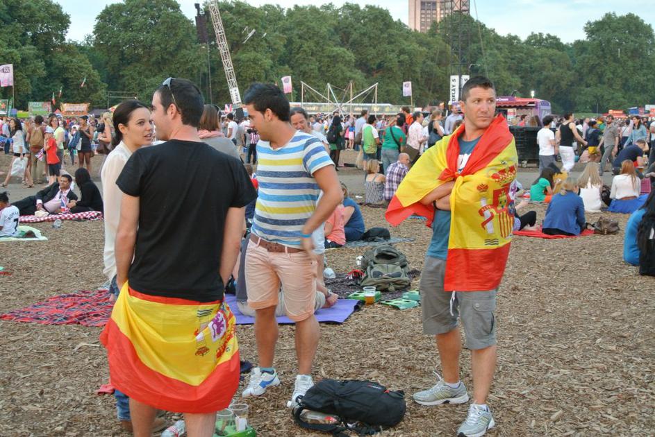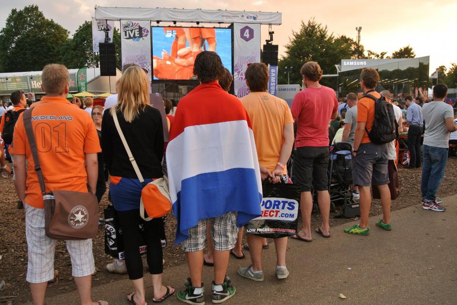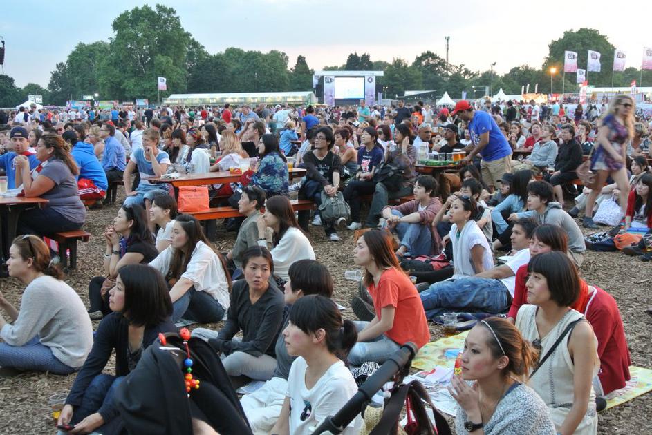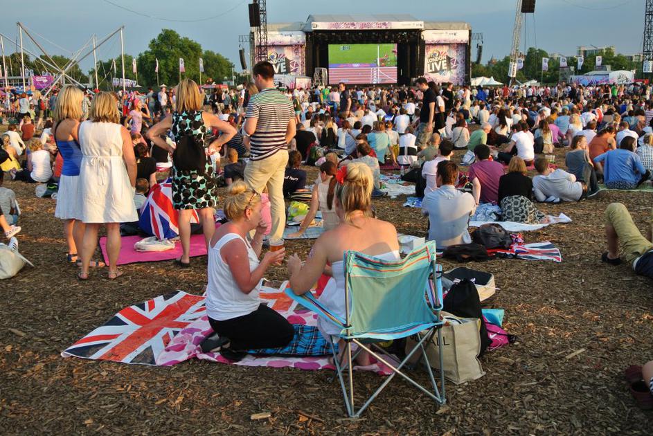 Spremljanje olimpijskih iger v londonskem Hyde parku.
