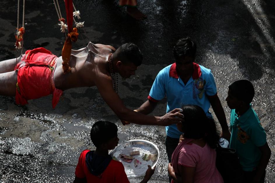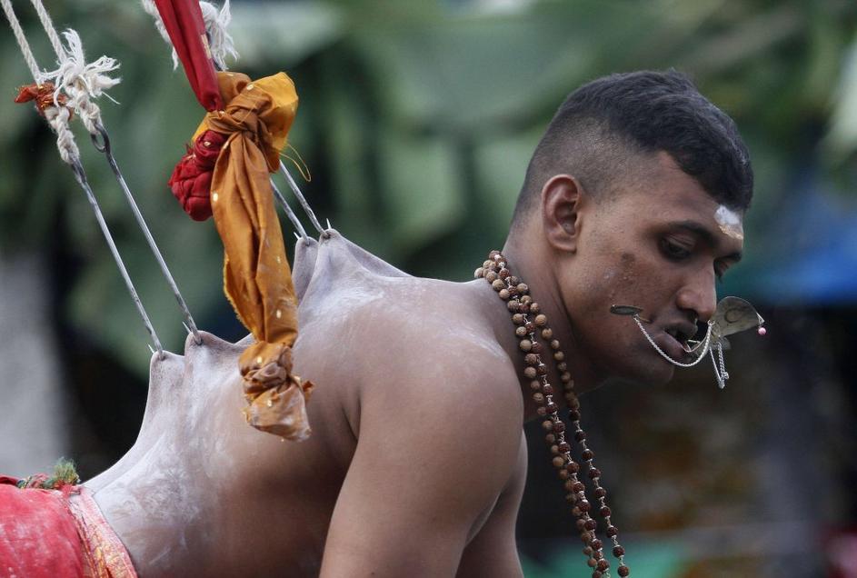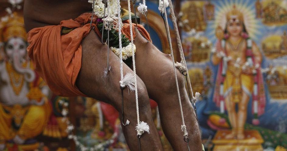 Na Šrilanki v čast bogovom viseli na kljukah.