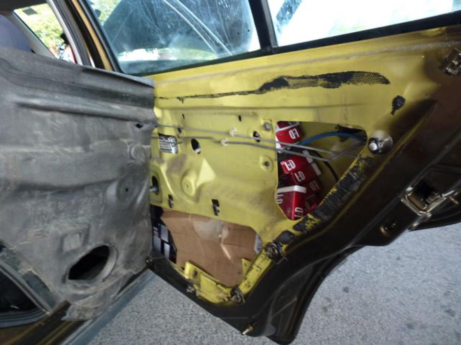 Tihotapljenje cigaretMed temeljito kontrolo sta v zadnjih vratih vozila, pod tapetami, odkrila skritih 170 zavojčkov cigaret. PU Novo mesto