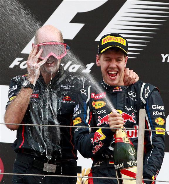 Vettel Newey potapljač maska stopničke šampanjec Red Bull VN Koreje Južna Koreja
