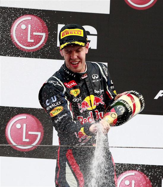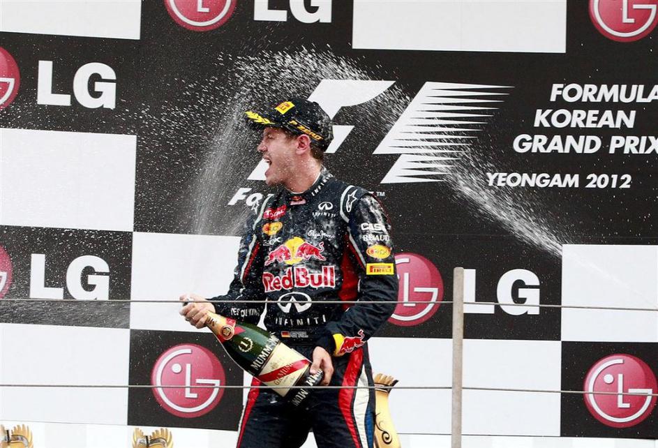 Vettel stopničke šampanjec Red Bull VN Koreje Južna Koreja Jeongam formula 1 dir