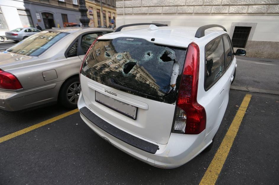 Bos razbijal avte pred sodiščem v Zagrebu.