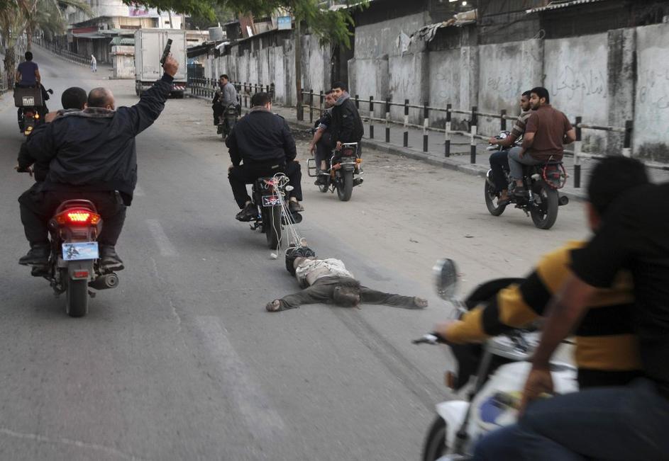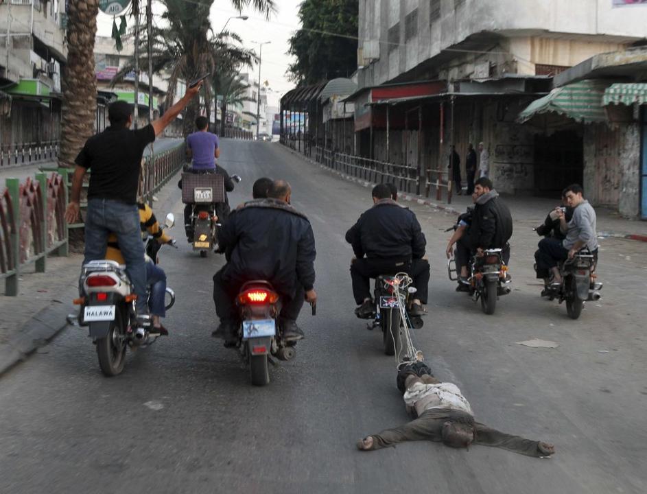 Plestinci vlečejo trupla z motorjem