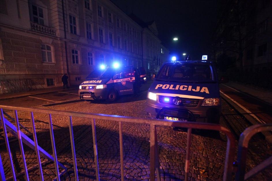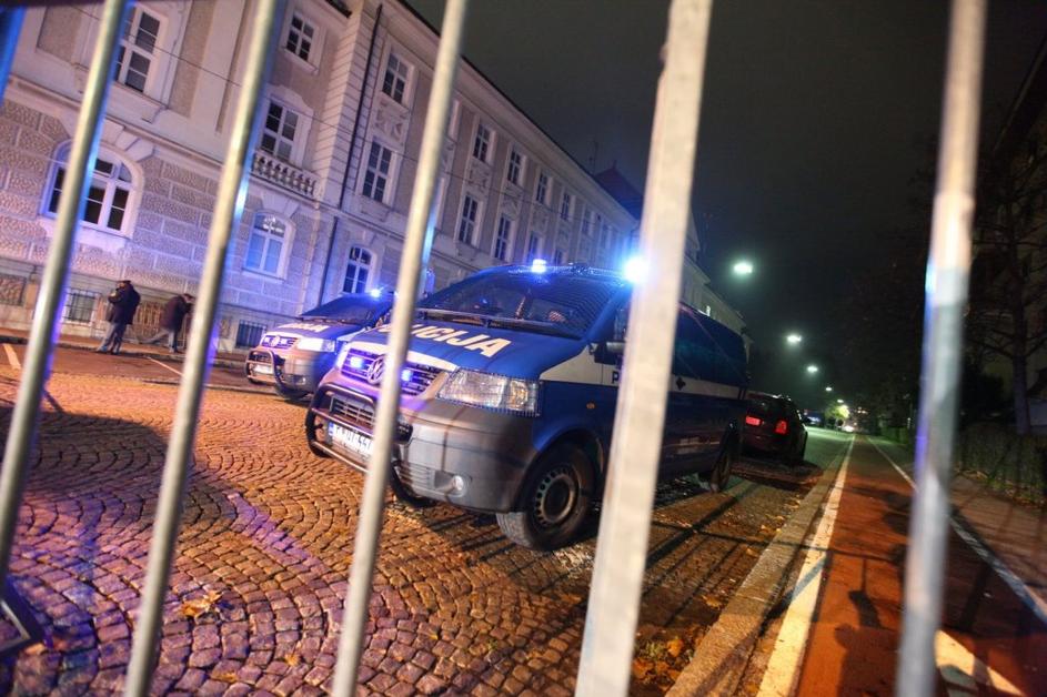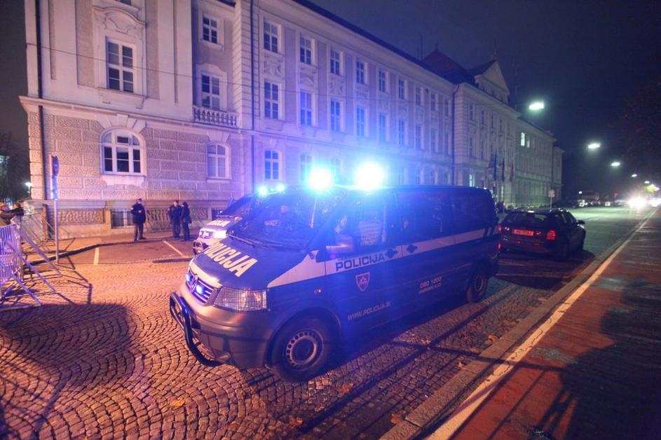 Policija pred stavbo občine v Mariboru