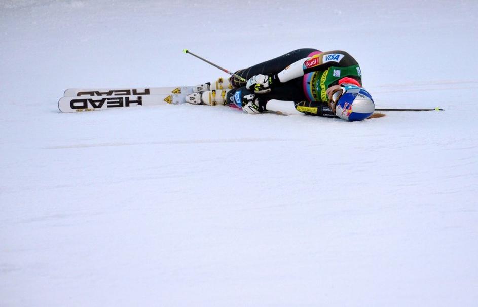 Izmučena Lindsey Vonn v cilju.