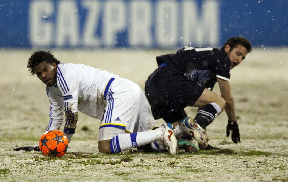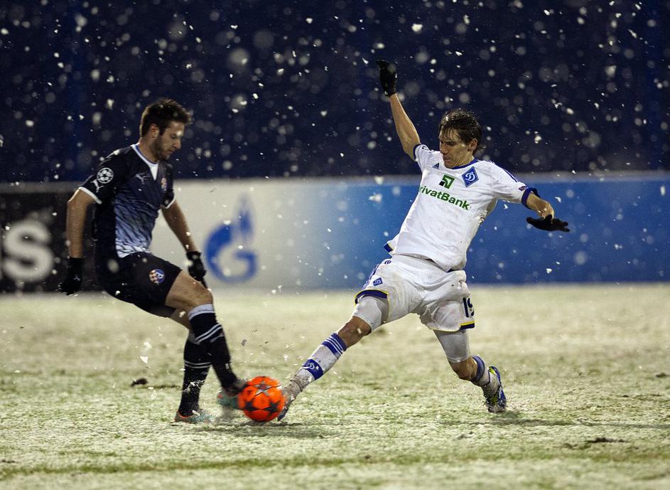 V Zagrebu je moral bolgarski sodnik Todorov v 10. minuti prekiniti tekmo za nekaj minut, da so zaradi močnega sneženja narisali rdeče črte.