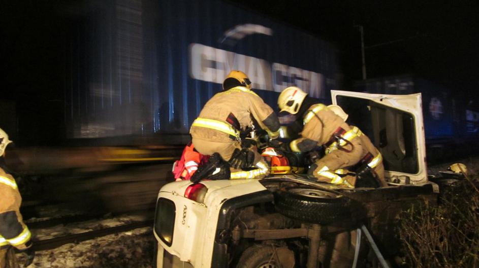 Reševali vkleščenega na tirih