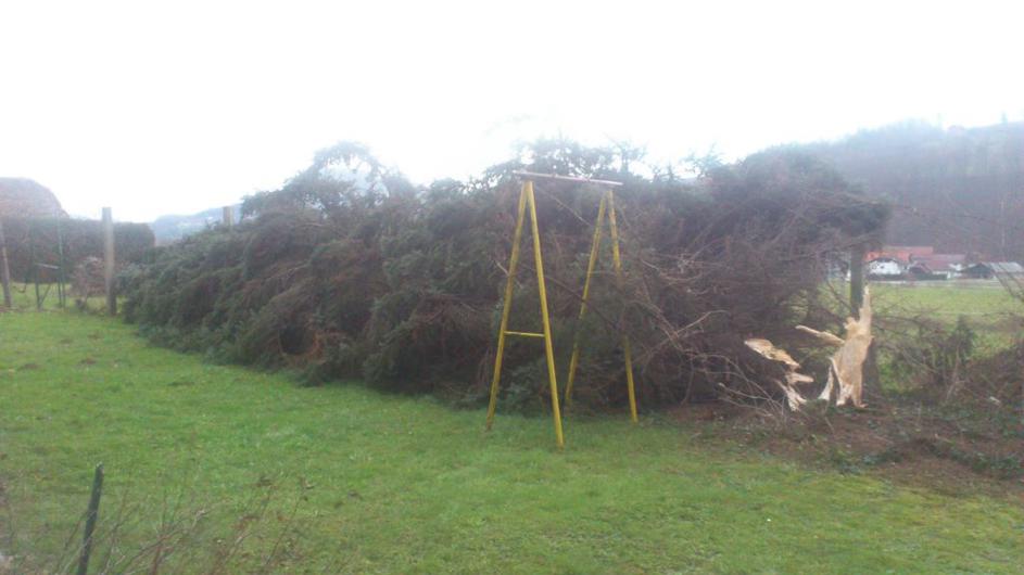 35 let stara in 11 metrov visoka omorika je klonila pod močjo vetra, je zapisal Rok.