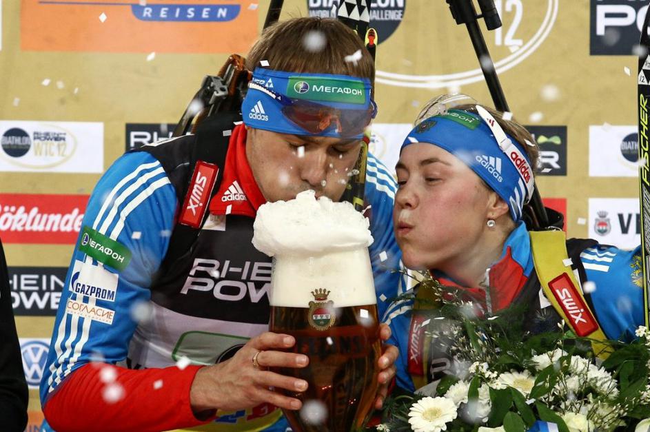 Zmagala sta Rusa Anton Šipulin in Jerkaterina Jurlova, ki sta si na stopničkah privoščila veliko pivo.
