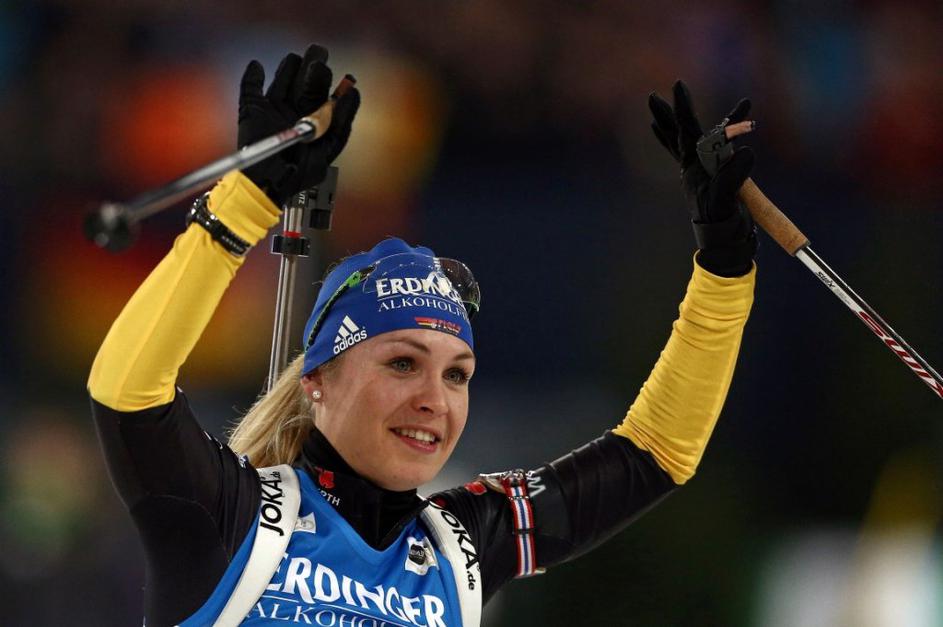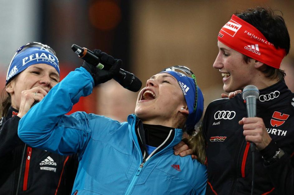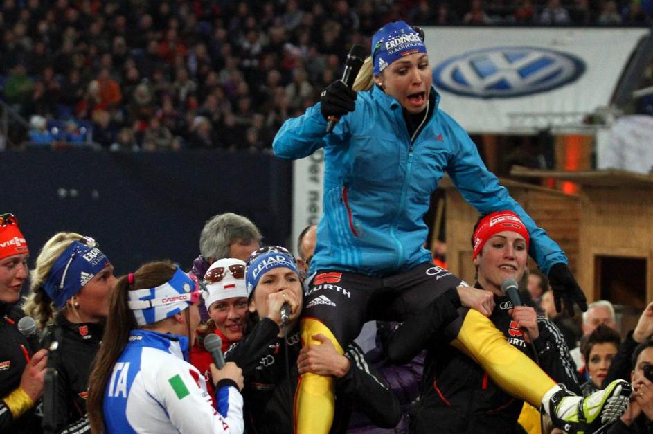 Gelsenkirchen Schalke Arena biatlon ekshibicijska tekma slovo Neuner