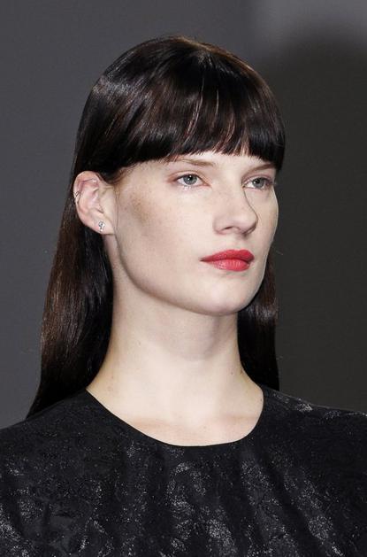 pričeskaOdprite obraz. In poudarite ličnice. Uspelo vam bo s širokim frufrujem. Takšen frufru pristoji vsem dolžinam las, za še večji učinek ličnice nežno poudarite z rdečilom. Pričesko vam odsvetujemo, če je vaš obraz bolj okrogel. Imaxtree