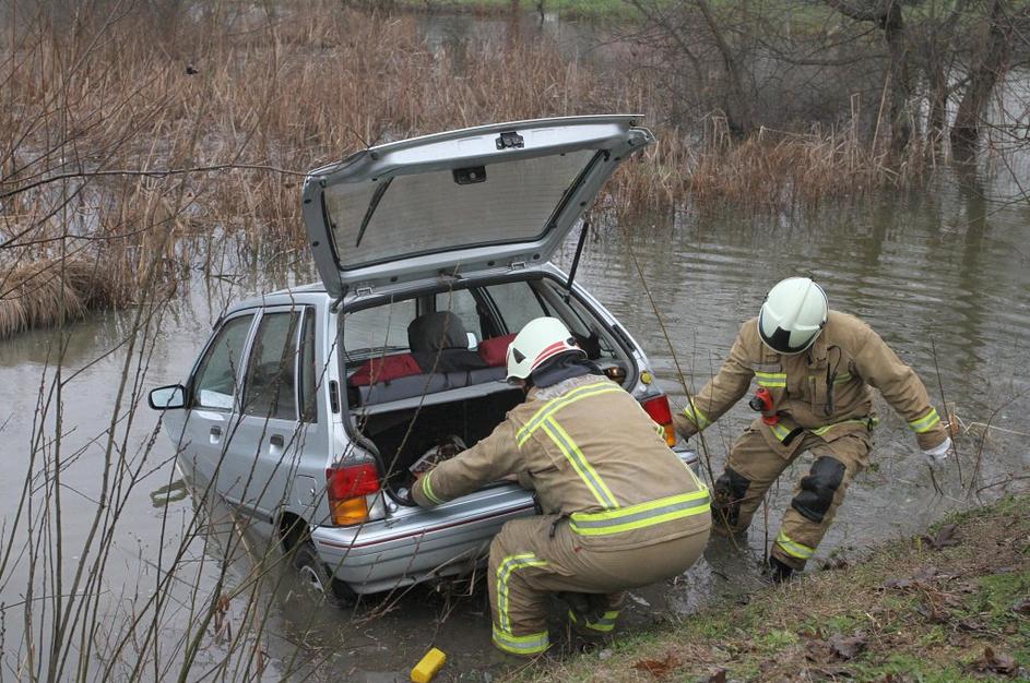 Zmotila se je v prestavi in zapeljala v jezero
