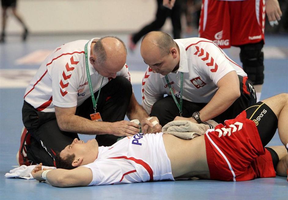 Žvižej Gaber Slovenija Poljska SP svetovno prvenstvo Zaragoza(Slovenija - Poljska) Z zmago nad Poljsko so slovenski rokometaši ostali na vrhu skupine C, kjer se bodo za prvo mesto očitno merili s prav tako še vedno nepremaganimi Srbi. Takole so se veselili Deničevi fantje. EPA