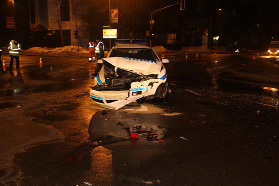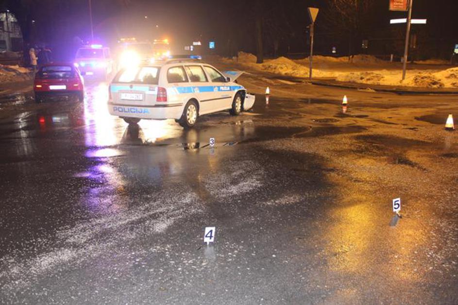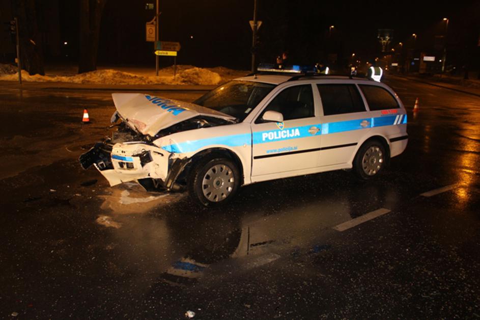 Voznik začetnik trčil v policijsko vozilo, trije poškodovani