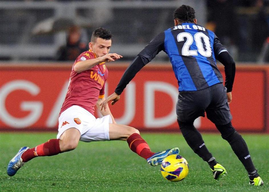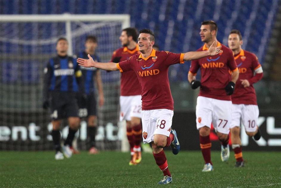 AS Roma Inter Milan pokal polfinale Coppa Italia Florenzi Obi(AS Roma - Inter Milan) Roma je bila na Olimpicu boljša od Interja in si priigrala majhno prednost pred povratno tekmo, ki bo zaradi težavnega razporeda na sporedu šele enkrat aprila. EPA