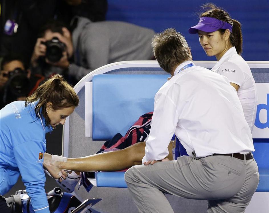 Ženski finale v Melbournu je v drugem nizu za nekaj časa prekinila poškodba Lijeve.