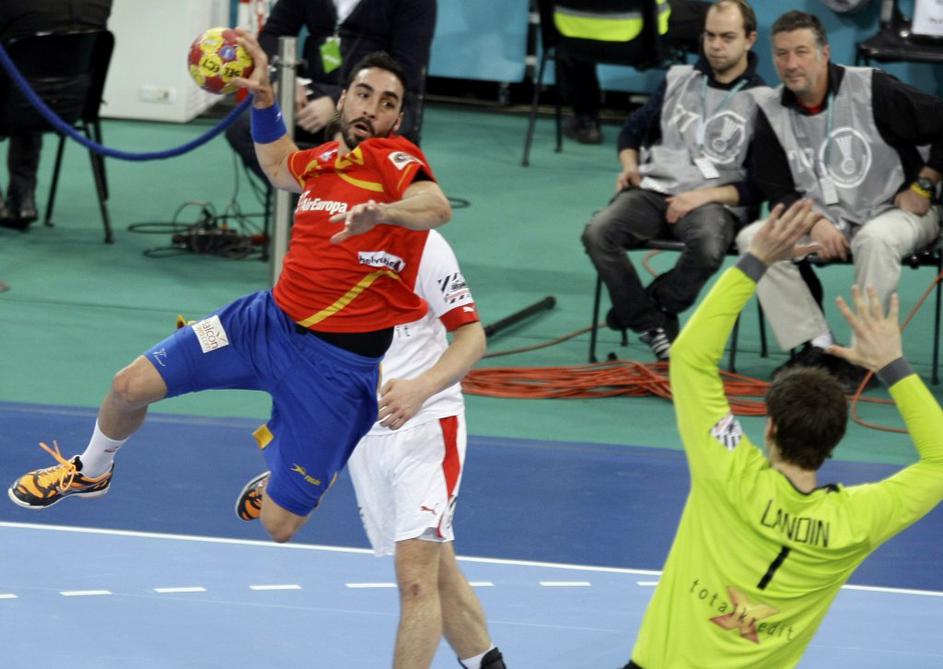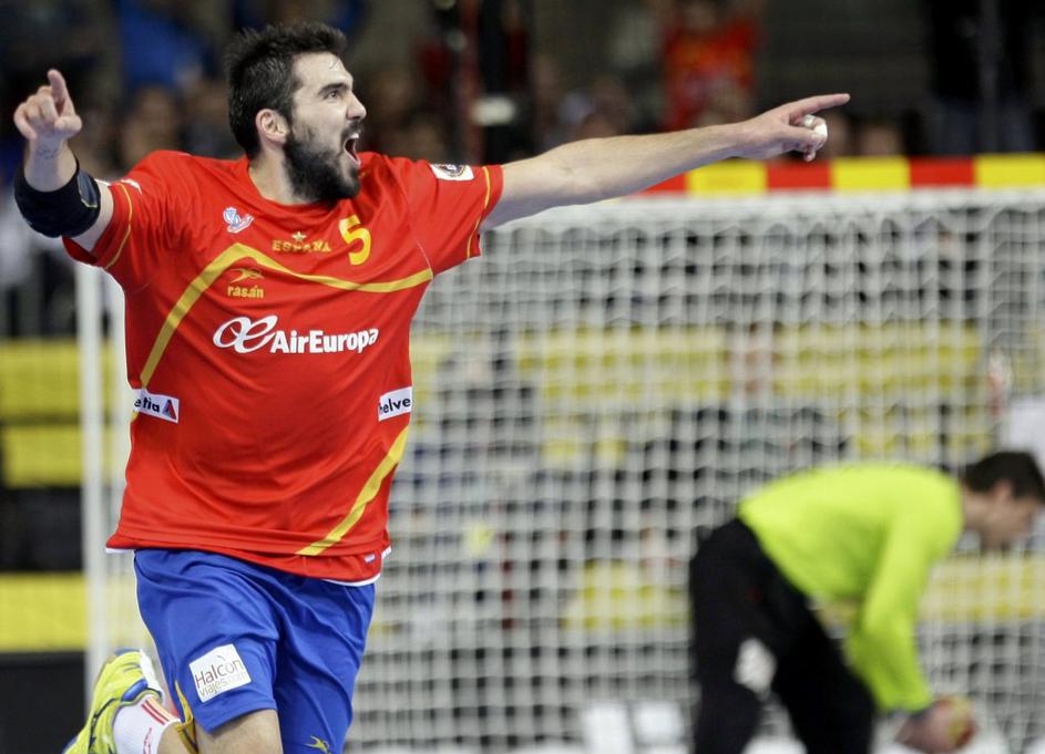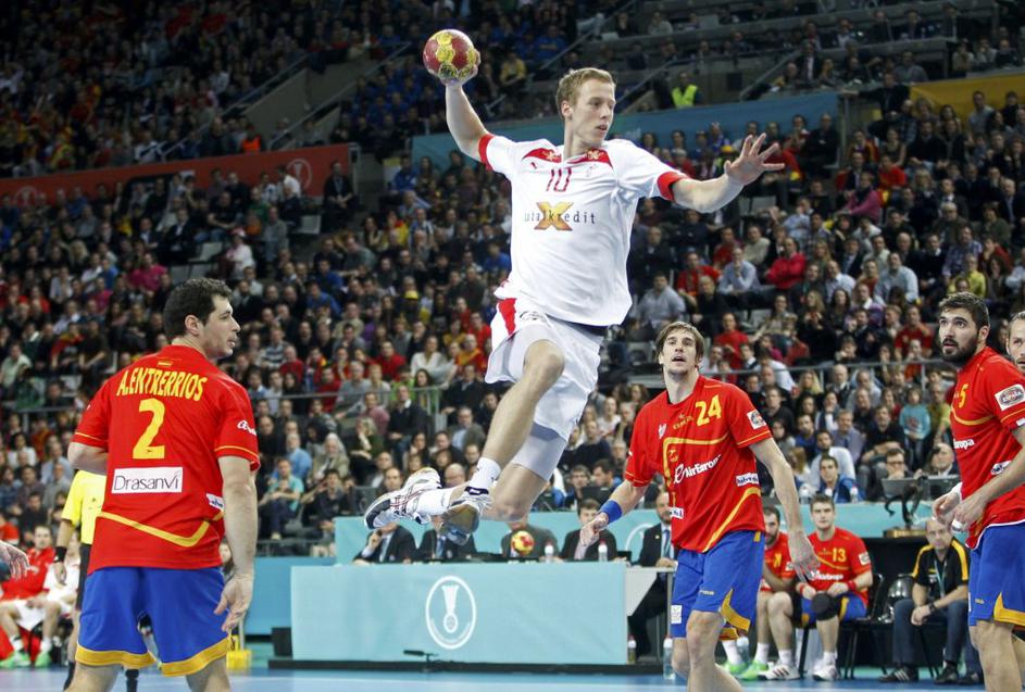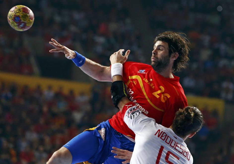 (Španija : Danska) Španija (na sliki Jorge Maqueda) je vodila od prve do zadnje minute srečanja.