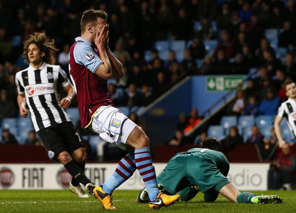 (Aston Villa : Newcastle United)(Aston Villa : Newcastle United) Newcastle je z 2:1 premagal Aston Villa. Tla poljublja strelec prvega zadetka Papiss Cisse. Reuters