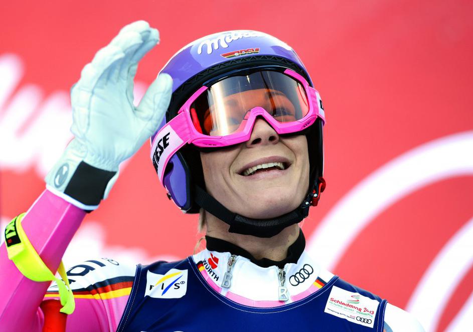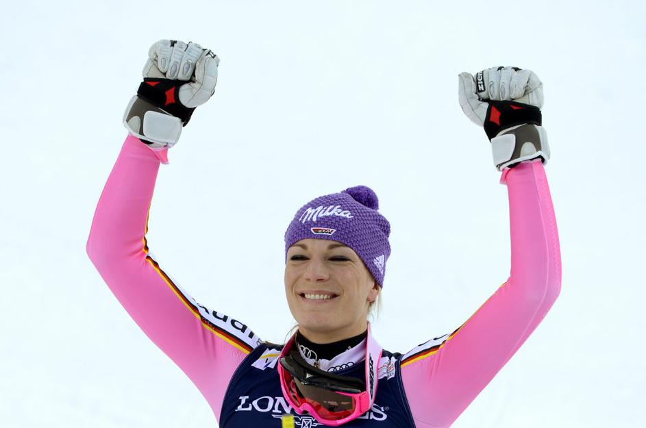 Maria Höfl-Riesch je napadala iz četrtega mesta in osvojila drugo zlato kolajno na svetovnih prvenstvih (2:39;92).