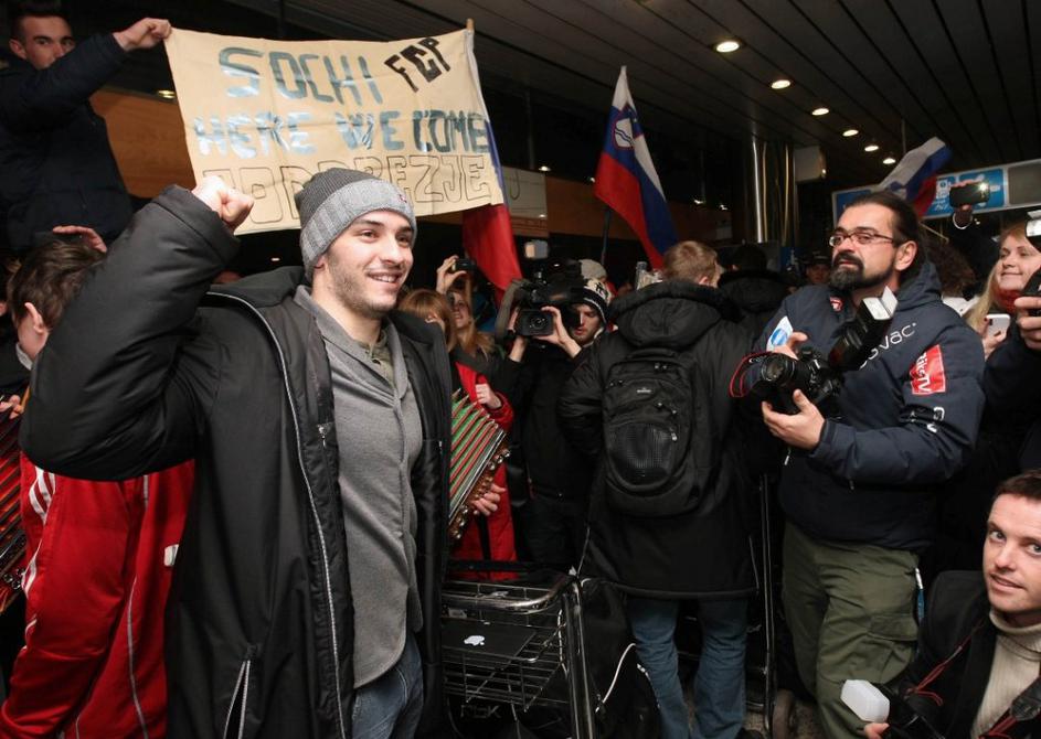 Kristan Slovenija reprezentanca hokej povratek letališče Brnik olimpijske kvalif