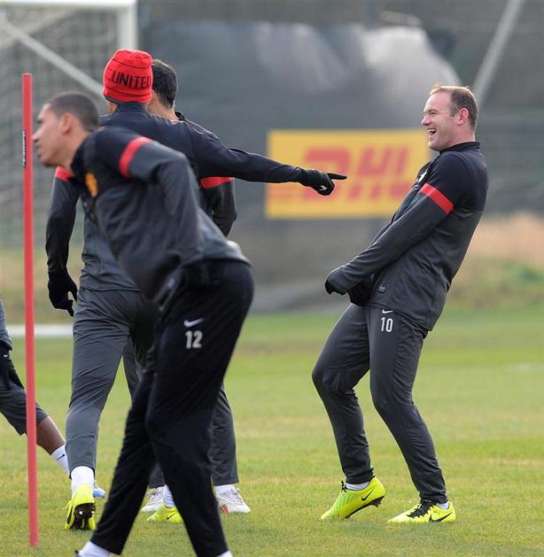 Wayne Rooney (spodaj) se je v Carringtonu več kot očitno dobro zabaval.