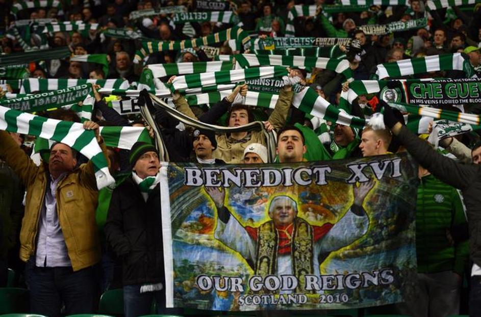 liga prvakov osmina finala celtic juventus Navijači Celtica so kljub zaostanku še naprej glasno prepevali, kot zavedni škotsko-irski katoliki pa niso pozabili niti na odhajajočega papeža. To je bila pač priložnost za novo provokacijo usmerjeno proti pretežno protestantskemu klubu Glasgow Rangers. Reuters