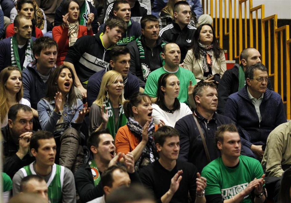 (Partizan - Union Olimpija) Navijači Olimpije so bili v Pionirju sicer v veliki manjšini, a so imeli na koncu največ razlogov za veselje.