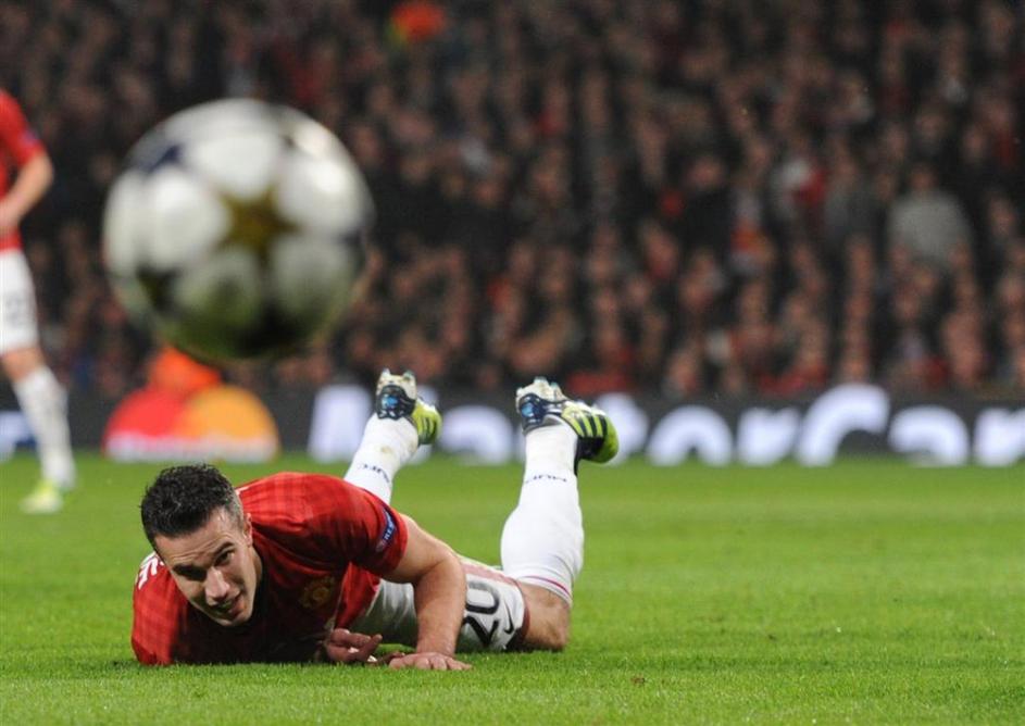 Van Persie žoga Manchester United Real Madrid Liga prvakov osmina finala