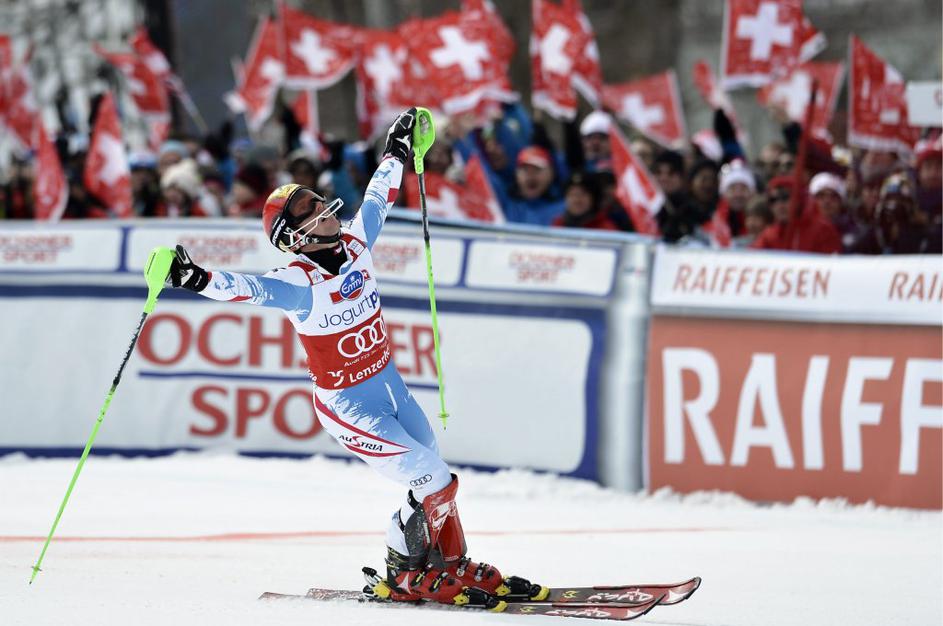Hirscher se je tokrat moral zadovoljiti z drugim mestom (+0,36). Avstrijec se je na stopničke uvrstil na vseh enajstih slalomih letošnje sezone.