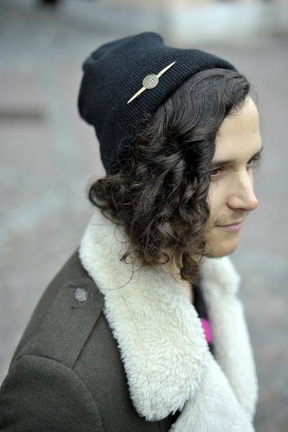 Taj, 22 let, študent. Nosi: hlače – H&M, pulover neznane znamke, kupljen v Londonu, plašč – Zara, čevlje – Topman, kapo in broško prav tako neznane znamke Anže Petkovšek