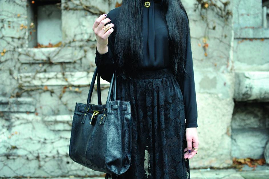 DianaDiana, 21, študentka. Nosi: čipkasto maksikrilo, bluzo in broško, vse vintage, plašč – Asos Anže Petkovšek