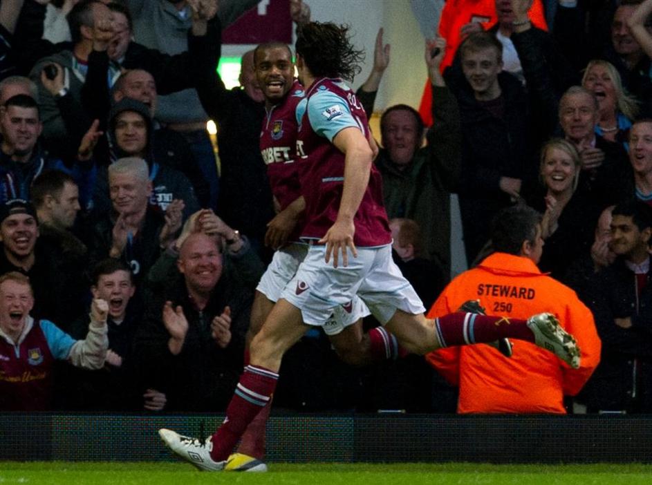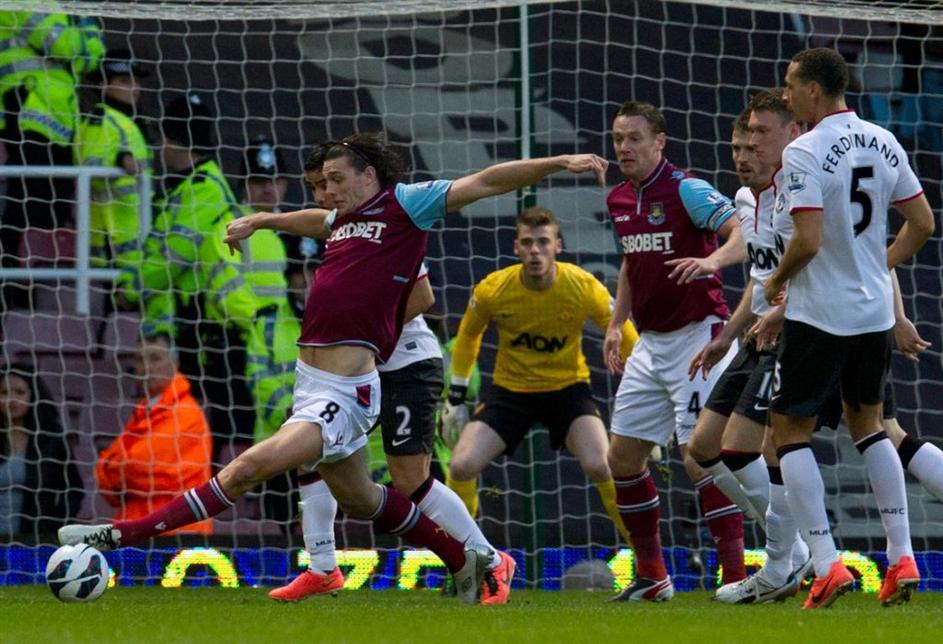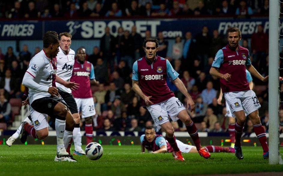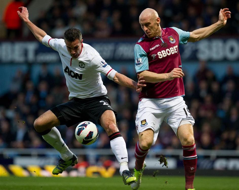 (West Ham United - Manchester United) Točko Manchester Unitedu je v vzhodnem Londonu z drugim zaporednim golom v prvenstvu prinesel Robin van Persie. EPA