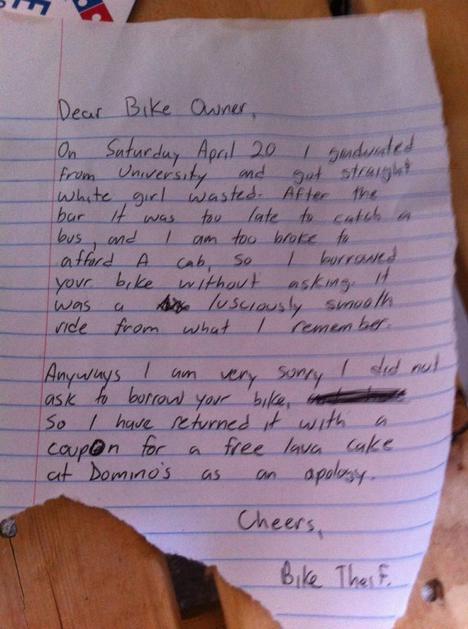 Pošteni lopov vrnil ukradeno kolo