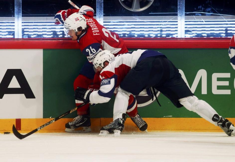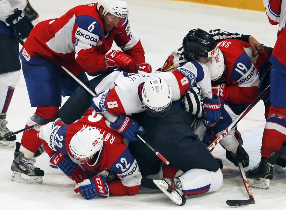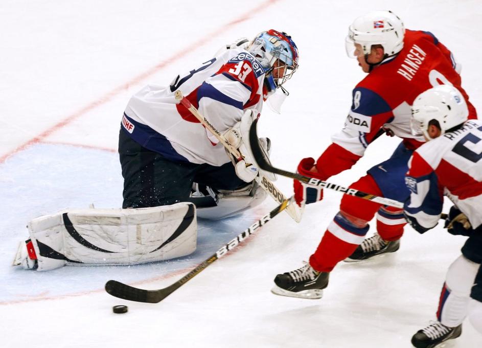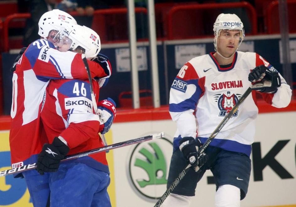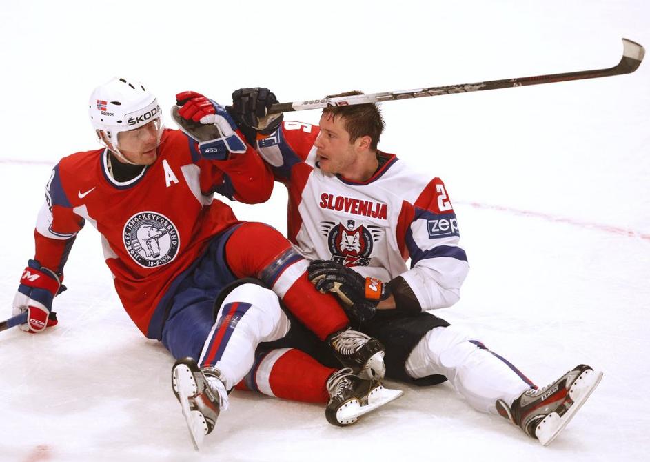 (Slovenija - Norveška) hokejska reprezentanca(Slovenija - Norveška) V zaključku tekme je bilo prisotne nekaj vroče krvi. Risi so bili večkrat blizu zadetka, a plošček ni in ni hotel v mrežo. Reuters