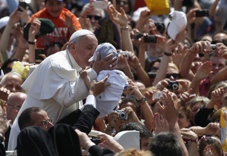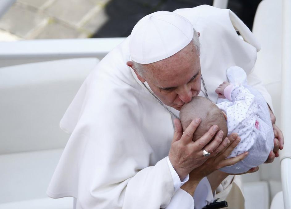 Na koncu kanonizacije je papež poljubil dojenčka.