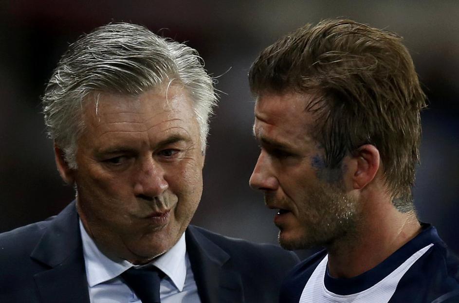 Beckham je pred odhodom z zelenice objel trenerja Carla Ancelottija.