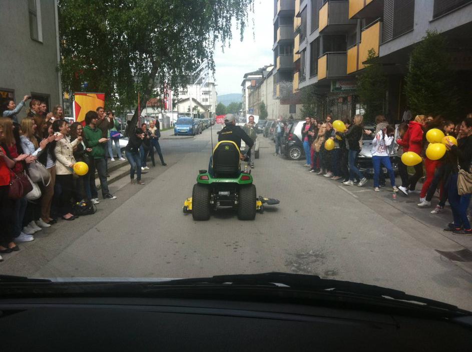 Voditelj s kosilnico čez Slovenijo