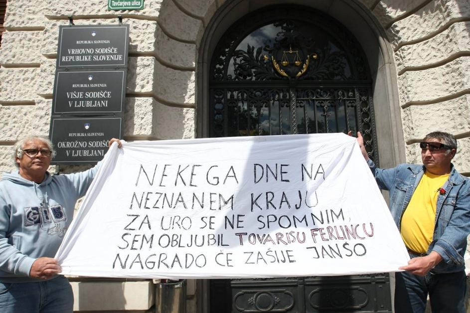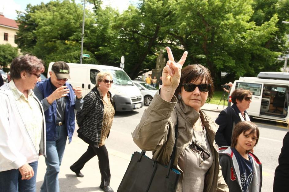 Protesniki, ki so se zbrali pred sodiščem ...