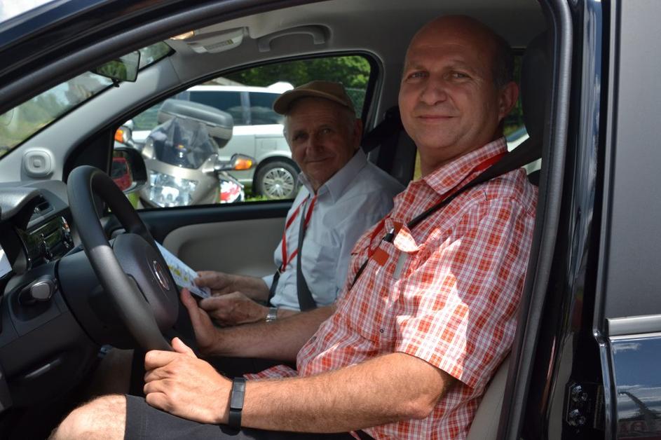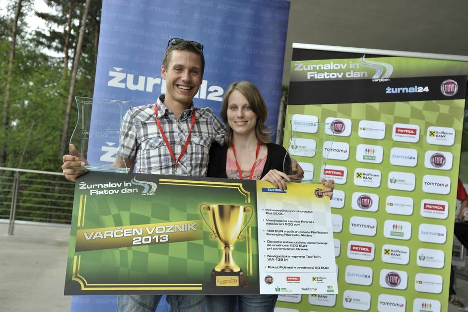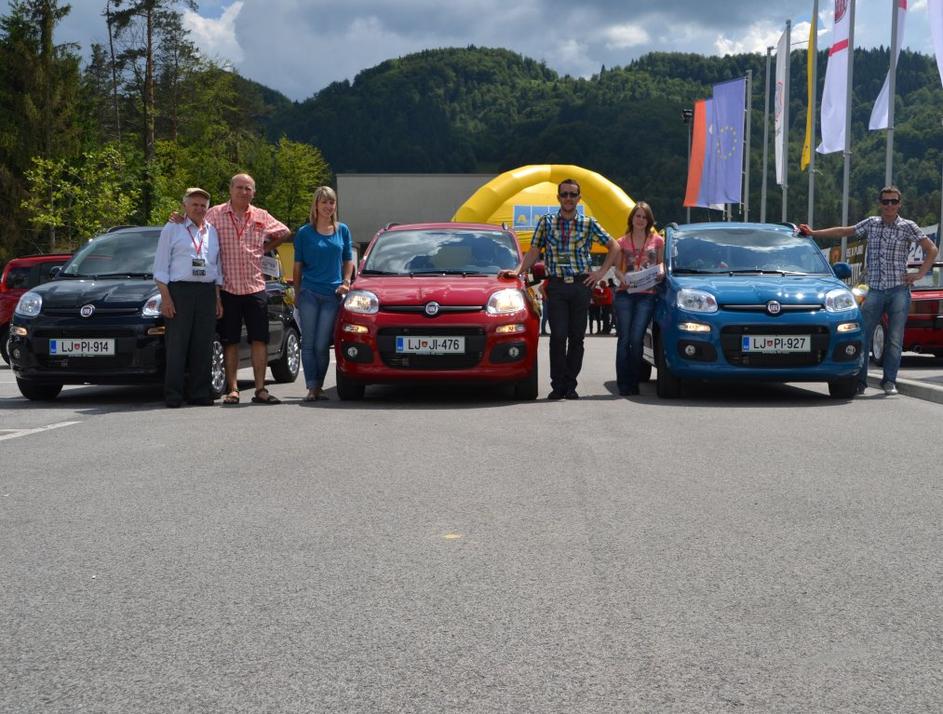 Zmagovalec v tekmovanju za varčnega voznika Ken Jurca (levo) s sovoznico Moriso Lesjak (v sredini) in zmagovalec v varni vožnji Bojan Potočnik (desno).